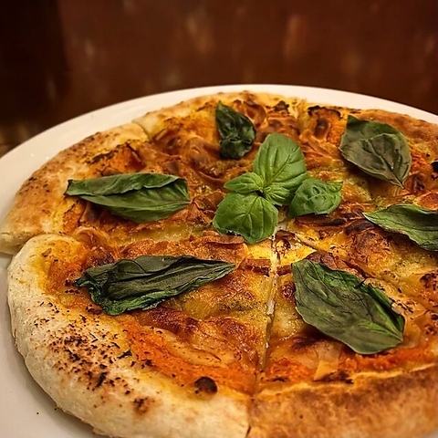 とろーりチーズの「ミックスピザ」、バジルとトマトでシンプルな味わいの「マルゲリータ」の2種類をご提供。香ばしいピザはワインとの相性もバッチリです◎
