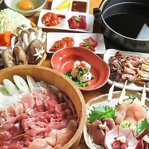 選べるもつ鍋or鶏鍋に、季節小鉢、熊本産馬刺し、鶏唐揚、焼き鶏つくね、炭火焼き鶏、〆の雑炊orチャンポン面、日替わりデザートまで全9品。3時間飲み放題付きで宴会・女子会にもおすすめの冬限定コースです。