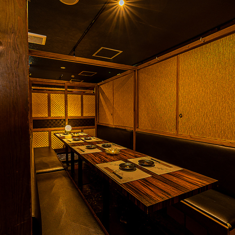 【少人数から大人数まで対応可能】個室席もご用意しております。間接照明と和の装飾の数々が洗練された大人な空間を演出しております!扉付きとなっておりますので周りを気にせずお楽しみいただけますよ!当店でゆっくりと羽を伸ばしてご寛ぎくださいませ♪