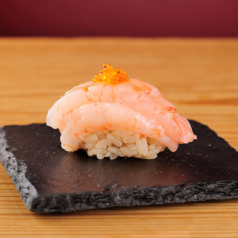 当店の誇る名物「エビカニ合戦」は、ほぼ原価100%で提供する渾身の一品。カニの甲羅に赤エビの身とズワイガニのほぐし身を豪快に盛り付け、黄身といくらが彩りを添えます。新感覚の食べ方で、全ての味わいのバランスが悶絶級の美味しさを実現しています。いくらを豪快に使ったスシエビスオリジナルメニューは悶絶する美味さです!