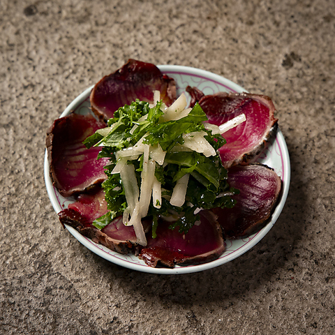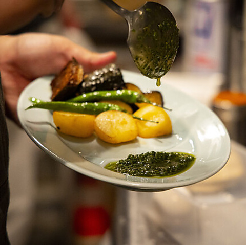 イタリアン経験豊富なシェフが作る、遊び心あふれる創作料理が多数。定番のメニューから、爽やかな梨とケールを添えた「戻り鰹のタリアータ」など、工夫を凝らしたひと皿をお楽しみいただけます♪食材と技が光る逸品をぜひご堪能ください。