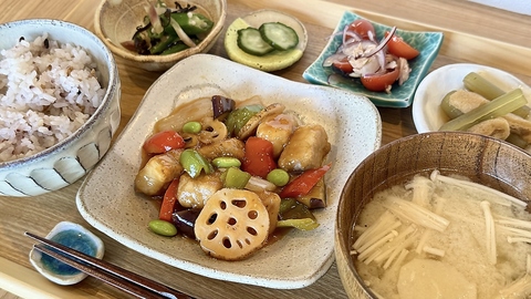 ランチ、ディナーともに食べれる半月替わりの定食です。その時期のお野菜などを使用し、薬膳をもとに摂るべき栄養を考えておりバランスよい食事ができます。食で元気になっていただきたいという気持ちがこもっていますので是非ご賞味ください。(今の定食メニューはInstagram、Googleで確認できます)
