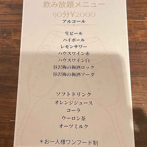 17時から18時まで生ビール,ハウスワイン、レモンサワー、ハイボール半額です。土、日曜日もです!