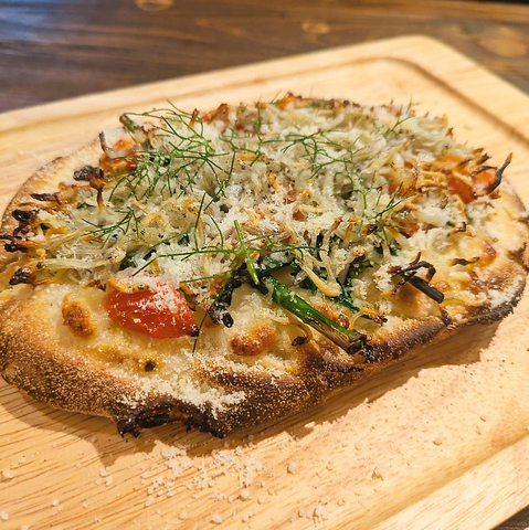 しらす、野菜、トマト、チーズ、ガーリック、ケッパー、フェンネル