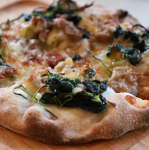 庄内豚のイタリア風ソーセージ、青葉ソース、菜花、モッツァレラチーズ、パルミジャーノ、マッシュポテト