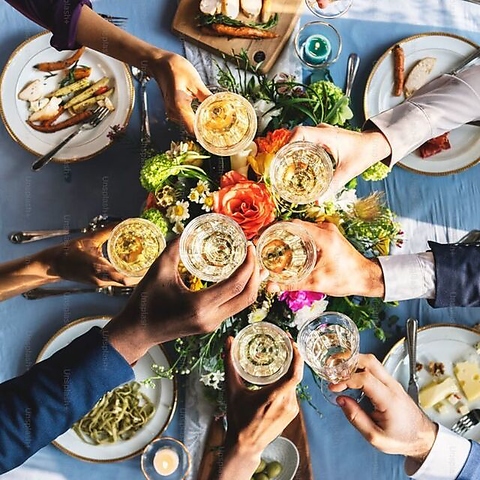 豪華な料理が並ぶビュッフェスタイルで、お好きなものを好きなだけ!種類豊富な飲み放題も付いて、大満足間違いなしのパーティープランです。企業宴会、懇親会、同窓会など、大人数の集まりに最適。手間いらずで楽しめる、華やかなひとときを演出します。ご予算に応じて内容の調整も承ります。