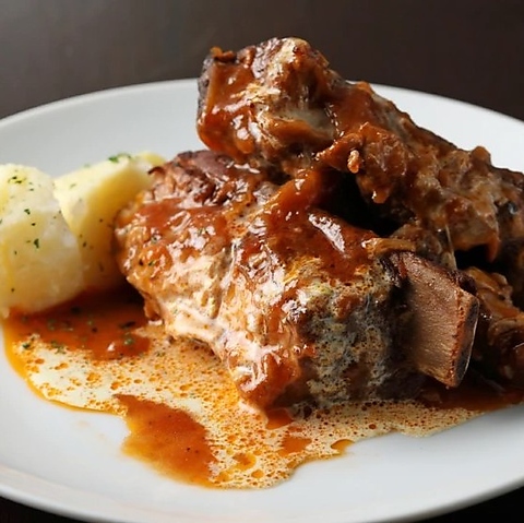 長時間かけて焼きあげオリジナルトマトソースで煮込んだ、やわらかスペアリブ!