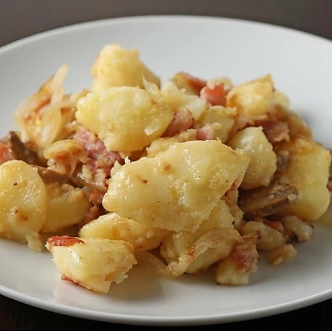 厳選したじゃがいもを毎日ボイル。ポテト、ベーコン、玉ねぎ、マッシュルームの旨味を引き出して香ばしく炒めてあります。