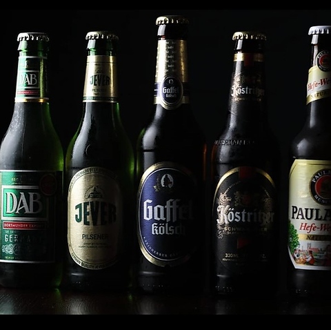 ドイツの樽生ビールは、季節によって変わる6種類をご用意!さらに、ケルシュやピルスナーなど、様々なスタイルの瓶ビールを10種類以上取り揃えております。本場ドイツの多彩なビールの奥深さを、リーズナブルなドイツ料理と共にお楽しみください♪ ビール好きにはたまらないラインナップです。