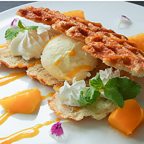 旬の食材をトッピングした季節感を楽しめるクロッフル。季節によってトッピングが変わります。スタッフまでお尋ねください!