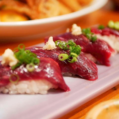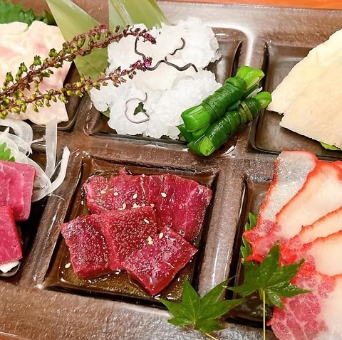 高タンパクで低カロリーな馬肉と、古来より愛される海の恵み・鯨肉を一皿で。噛むほどに広がる馬肉の甘みと、鯨特有の濃厚なコクが織りなす対比は格別です。希少部位の個性を活かした、職人技が光る逸品をぜひご堪能ください!
