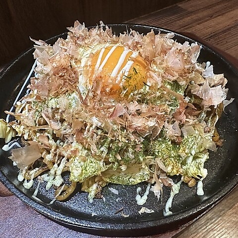 丁寧に焼き上げた出来立てアツアツをお召し上がりいただけます。キャベツの甘みと豚肉の旨味が口いっぱいに広がり、特製の自家製ソースとの相性も抜群です。990円(税込)というお手頃な価格で、至福のひとときをお楽しみください。