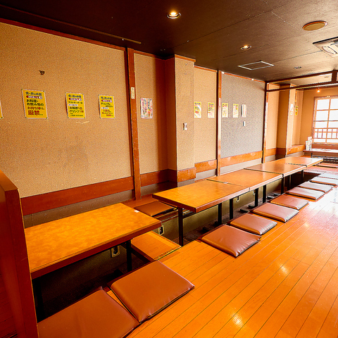 最大65名迄OKの広々お座敷。大宴会も志なのすけにお任せ下さい!掘りごたつ席で足もと広々。ゆったりとした空間でおくつろぎいただけます★忘年会のご予約はお早めに!