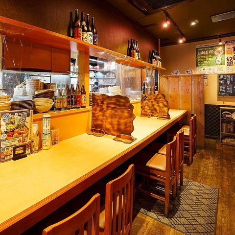 奥行き広々カウンター席もあります。ゆったりお食事を楽しめますよ♪キッチンに面しているお席なので、白衣のスタッフにその日のおすすめを訪ねてみて下さい。職人さんとの会話もご馳走の一つかもしれませんね。お一人様も歓迎☆