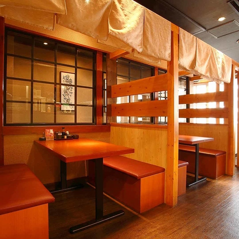 テーブル席はすべて柱と腰壁で仕切られています。柱を少しずつずらしているので周りのお客様と目が合うこともありません。大切なお仲間と新鮮な海の幸、美味しいお料理でお楽しみください♪食べ飲み放題コースもありますのでこちらもお見逃しなく!のんびりと【志なのすけ】の美味しいお料理をお楽しみください!