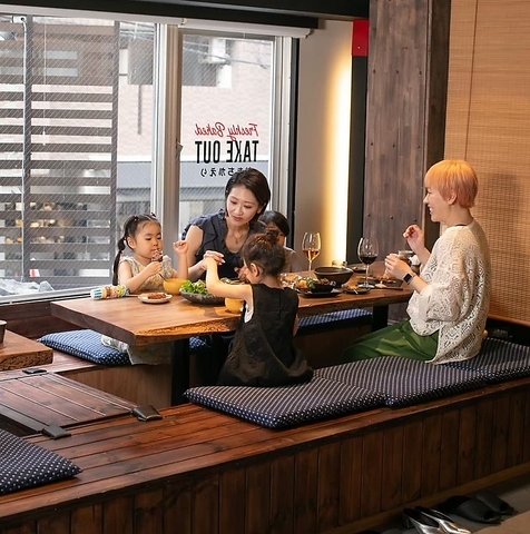 木の温もりが感じられる和の雰囲気の店内は、ゆったり掘りごたつ席とカウンター席を完備しております。ご家族でも愉しめるよう、キッズスペースもご用意!宴会はもちろん、友人同士やご家族でなど、いろんなシーンでご利用いただけます。