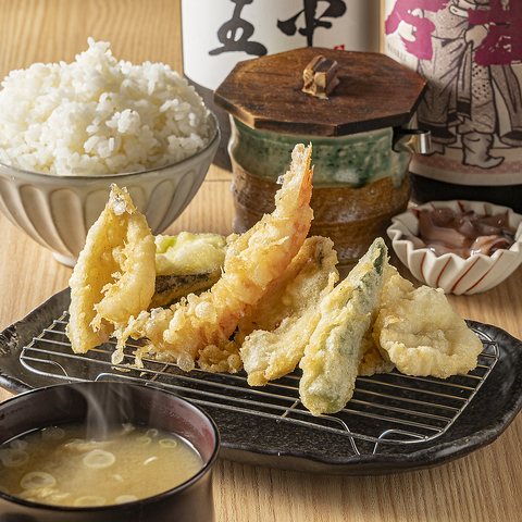 塩と天つゆで味わうサクサク食感の天ぷら