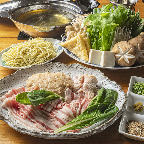 塩・味噌・醤油から選べる秘伝ちゃんこ鍋を中心に、小鉢・サラダ・〆の雑炊またはラーメン・デザートまで揃ったコースです。 落ち着いた空間で、ゆったりとしたひとときをお過ごしください。 ※ご利用の際は2日前までにご予約をお願いいたします。