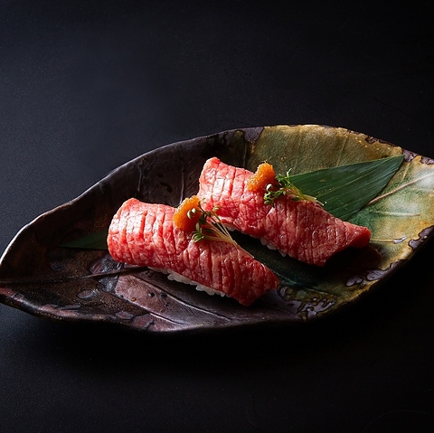 豊潤な旨味の和牛の大トロカルビを丹念に炙り、握り寿司に仕上げました。