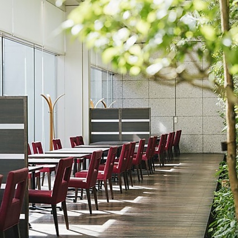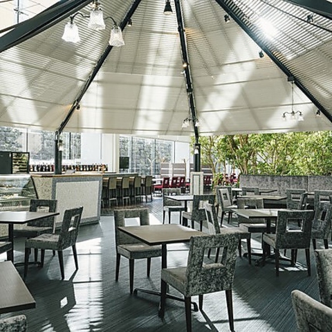落ち着いたシックな色調で統一されたパーゴラエリアは、大人のランチに最適な空間です。大きな窓から光が差し込み、ゆったりとした時間が流れます。周囲を気にせず、大切な人との会話や食事を心ゆくまでお楽しみいただけます。