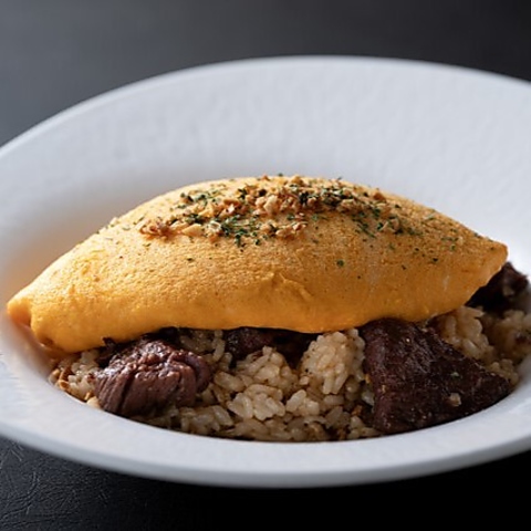 自慢のガーリックライスにふわとろオムレツをトッピング。お酒とも合う大人のオムライス!!