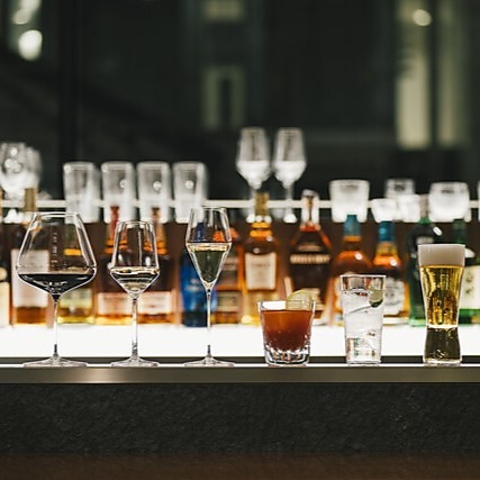 世界各国から厳選した20種類以上のグラスワインをご用意。シャンパーニュから食後酒まで、料理に合わせてお楽しみいただけます。また、アサヒ・スーパードライや、チェコ産のピルスナーウルケルなど、生ビールは2種類。ウィスキーなどのハードリカーも豊富に取り揃え、「美味しいお酒が飲めるお店」として、皆様をお迎えします。