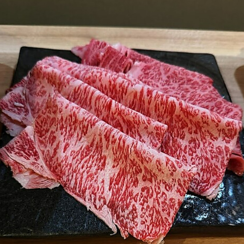 厳選された最高級A5ランク黒毛和牛は口に入れた瞬間にとろけるような柔らかさと旨みが広がります!きめ細やかなサシが織りなす霜降り。特製の割り下にもこだわっております。