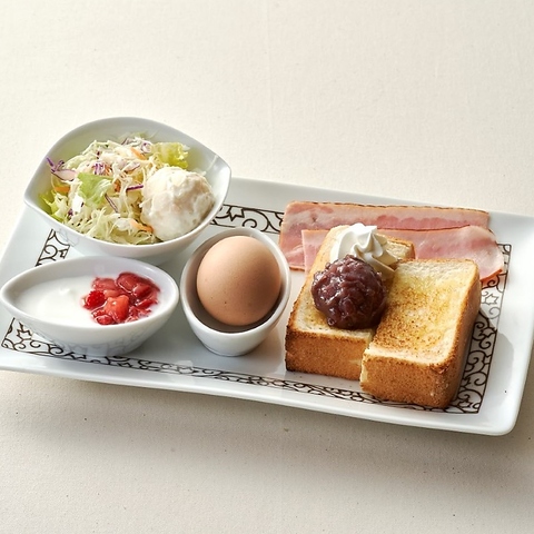 全日7時半~11時までご利用可能です。豊富な種類のメニューをご用意しており、ゆったりとした優雅な朝食タイムをお楽しみいただけます。ゆで卵や十勝小倉あんなど、お好みで選べる一品もあり、あなたの朝をより特別なものにします。充実した朝食で、素敵な一日のスタートを切りましょう!※画像は小倉トーストです。
