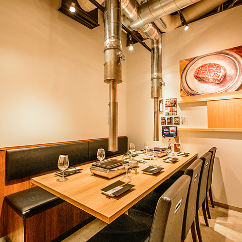 五反田駅からほど近くアクセス抜群★店内はお隣との間隔も広いので、ゆったりした空間で思い切り焼き肉を楽しむことができます。上質なお肉に合わせて落ち着いた雰囲気になっているので、接待や会食などのビジネスシーンからご家族様でのお食事などプライベートなシーンまで幅広くご利用いただけます◎