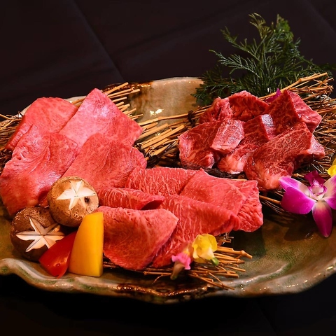 ヘレステーキやシャトーブリアンをはじめ、内臓肉以外はすべて宮崎牛を使用した贅沢な盛り合わせです。厳選した上質な部位を一皿で楽しめる、まさに必食の逸品。様々な部位を食べ比べたい方におすすめです。焼肉盛・ステーキ盛でご用意しています。