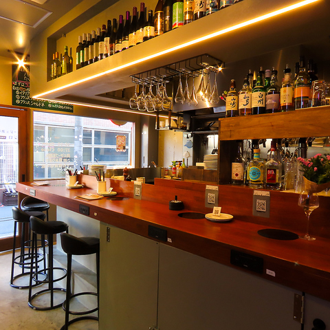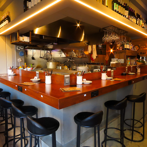 おしゃれな内装が魅力のカウンター席で、ひとりでも安心して食事を楽しむことができます。