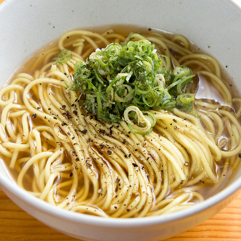 ラーメン店を営んでいたオーナーが、たどり着いた究極のしおラーメンです。北海道羅臼産の高級昆布から丁寧に取った出汁は、驚くほど澄んでいながらも、奥深い旨みと香りをまとった至極のスープ。〆にぴったりの、胃に優しく染みわたる極上の一杯です。夏にはさっぱりとした冷やし塩ラーメンもご用意しております。