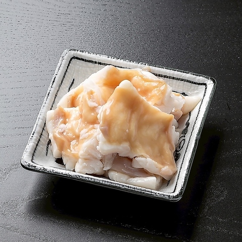 鮮度抜群のホルモンに食感を良くする隠し包丁を施しております。噛むたびに旨味と食感を堪能◎