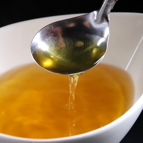 料理の味の基本となる「うま味」を凝縮させた「黄金のだし」◎鰹節をふんだんに使い、手間ひまかけてとっただしは、料理の味を一層引き立てます。おいしくて体にやさしい当店の味を支える、まさに「お店の顔」とも言える存在です。