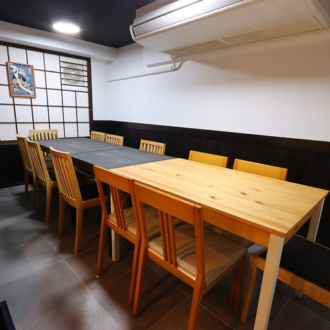 落ち着いた雰囲気で食事を楽しめるテーブル席です。和の温かみを感じる空間で、くつろぎのひとときをお過ごしください。