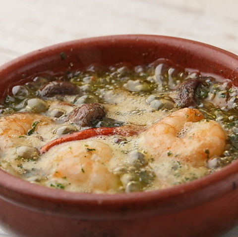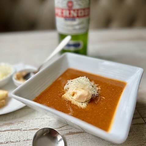 サフランをはじめフェンネル、コリアンダー、オールスパイス、パプリカなど数種類のスパイスを絶妙にブレンドしています。さらに、濃厚な海老、魚、貝、鶏の出汁が複雑に重なり合い、豊かな旨味と深いコクを生み出す、当店オリジナルの味わい◎一口ごとに広がるスパイスの香りと海の恵みを感じながら、贅沢なひとときを。