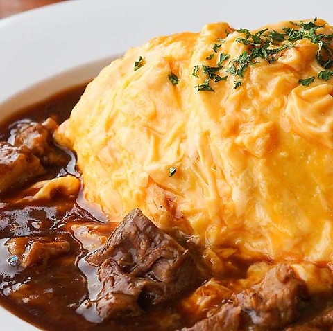 とろっとろな卵と濃厚ソースのハーモニーが最高なオムライスです。ソースは自家製デミグラスソースをはじめ、大好評の全7種が揃っています♪ライスはケチャップライスまたはバターライスの2種類から選べます ◎素材にこだわったオムライスとじっくり煮込んだビーフシチューは、保存料は使用しておらす安心安全です。