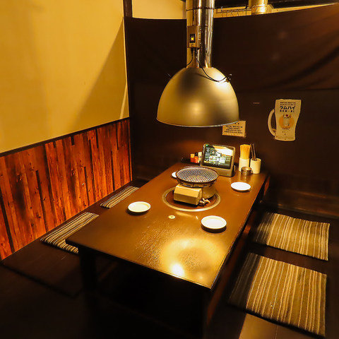 当店のテーブル席は4名様用が2卓あり、各席にロースターを完備。ご夫婦やカップル、ご友人同士で肩を並べて楽しいひと時をお過ごしいただけます。テーブルの間をカーテンで仕切れるので、プライベート感もあり落ち着いた空間でお食事をお楽しみいただけます。