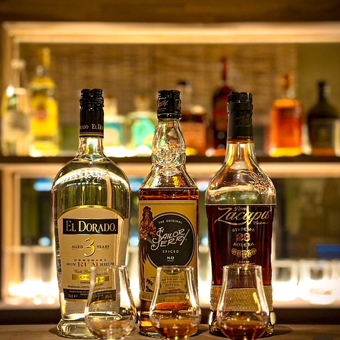 キャプテンモルガン バニラとスパイスが甘く香る一杯軽やかな口当たりで、始まりにぴったり。ディプロマティコ リザーブ 濃厚で奥深い甘み。カカオとドライフルーツの香りがゆっくり広がるロン・サカパ 23年蜂蜜とレーズン、樽の香りが織りなす長い余韻を、ストレートで。