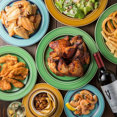 自慢のチキン料理を心ゆくまで堪能!チキンフィンガー、バッファローウィング、ペリペリチキンなど、バラエティ豊かなラインナップが食べ放題。ポテトやサラダも付いた大満足コースです。