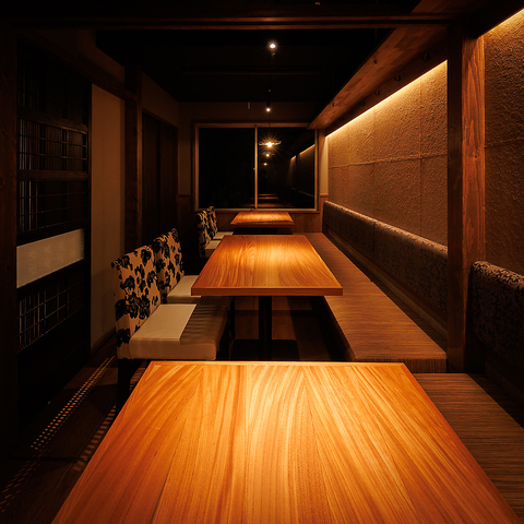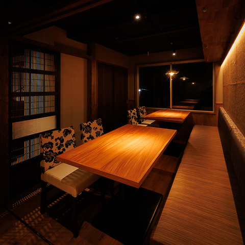 ≪ゆったりテーブル≫2名~80名様までご案内可能です。温かい灯りと洗練されたインテリアが演出する上質な空間。雰囲気抜群のテーブル席は接待やデートや女子会におすすめ!人数に応じてゆったりとしたテーブル席をご用意させて頂きますのでご予約の際にご相談ください。新年会・接待にもおすすめです◎