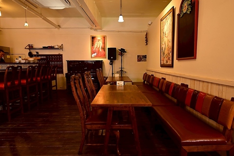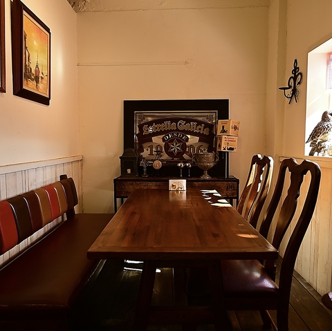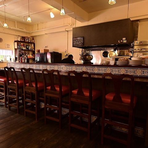 フラメンコのBGMで本場の雰囲気を感じれる店内は、木の温もりと柔らかな灯りに包まれたテーブル席とカウンター席、スペインの美食とワインをゆったり堪能できます。隣席との距離も程よく、会話を楽しみながら本場の味に浸れる落ち着いた空間です。