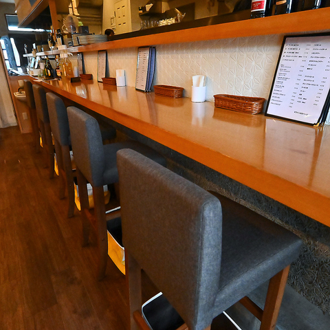 【ご夫婦、カップル、大切なご友人と】カウンター席は全8席。ご友人とのお食事やデート、女子会など、カジュアルにご利用いただけます♪お一人様でのご利用も大歓迎です◎お気軽にお立ち寄りください。