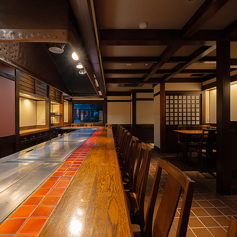 鉄板が目の前にあるカウンター席では間近で、テーブル席でも臨場感たっぷりに、火が上がるほどの見どころが満載の調理風景をお楽しみいただけます★熟練の火加減による一品料理の絶品な味わいはもちろん、ライブ感あふれる料理人の手さばきもエンターテイメントとしてご満喫くださいませ。