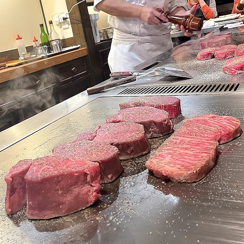 鉄板焼きのダイナミックな調理風景も間近で満喫!1種のショーでありエンターテイメントをお楽しみあれ♪