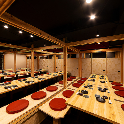 【最大44名様個室】当店は2名~最大44名様の団体席も個室でご用意しております。ご宴会におすすめの飲み放題付コースを各種ご用意しておりますので、ぜひご利用ください。