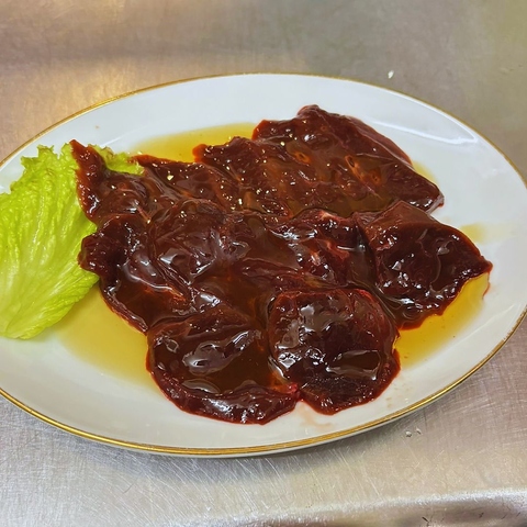 レバ刺とごま油&お塩の最高のマリアージュを召し上がれ。