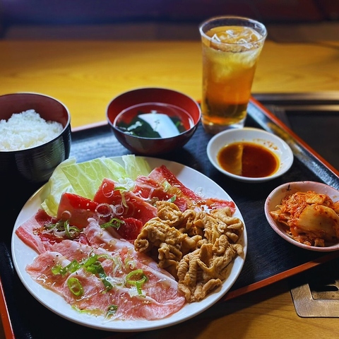 牛バラ、ブタタン、ブタハツ、ブタカシラ、味付ホルモン、トントロ、トリモモ、ブタハラミ、ブタバラ、ブタロース、ブタ軟骨の計11 種類から3種類をご選択いただけます。ライス・スープ、キムチ付き平日はもっとお得に1000円!さらにドリンクも付きます!土日は1180円となっております。