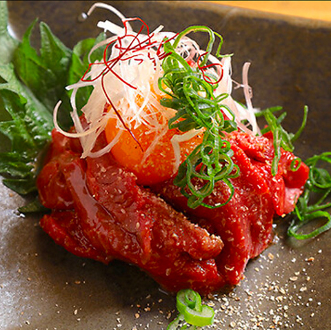 九州の黒毛和牛を使用し、仕入れに徹底的にこだわっています。鮮度抜群のお肉を厳選し、ホルモンはお店で丁寧に下処理を行うことで、質の高い食材をお楽しみいただけます。当店は、正式な「生食用食肉取扱許可」を受けた数少ない店舗です。安心・安全にユッケや肉刺しをご堪能いただけるのも当店ならでは。厳選した素材を最良の状態でご提供◎