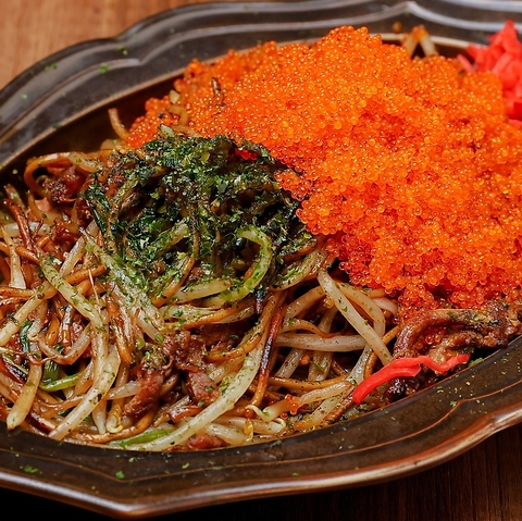 テレビで話題「両面焼きそば」 自家製の麺とソースで両面を香ばしく焼く「外パリッ中モチッ」食感が大人気!開店以来30年超かけて追求された一品 お好みで豊富なトッピングをたくさんつけてあなた好みの絶品焼きそばを! 厚切りベーコン、目玉焼き、青唐激辛プリッキーヌ、特製ソーセージうずまきちゃん、とびっこ 等々他店では味わえない!
